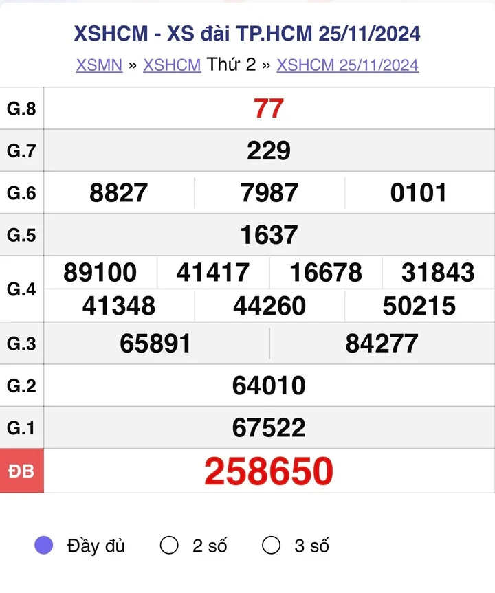 Xem lại kết quả xổ số TP.HCM các kỳ trước