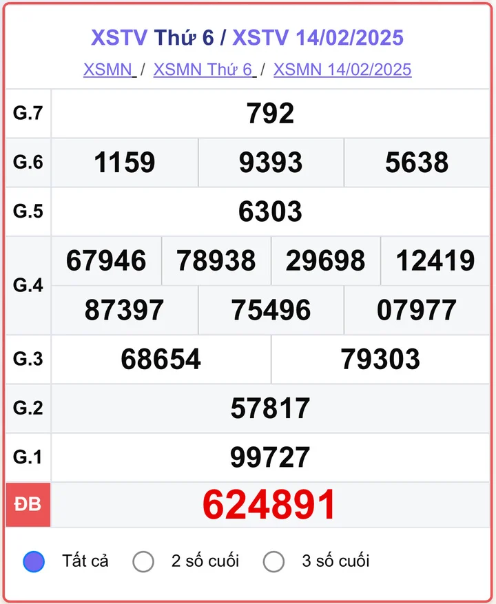 XSTV 14/2, kết quả xổ số Trà Vinh hôm nay 14/2/2025.