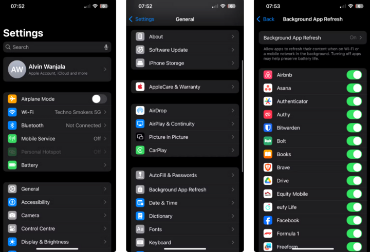 Nếu thấy ứng dụng nào có hoạt động nền bất thường, hãy tắt bớt tính năng này. Bạn có thể làm điều đó bằng cách vào Cài đặt (Setting) > Cài đặt chung (General) > Làm mới ứng dụng trong nền (Background App Refresh), sau đó tắt các ứng dụng không cần thiết phải cập nhật liên tục.