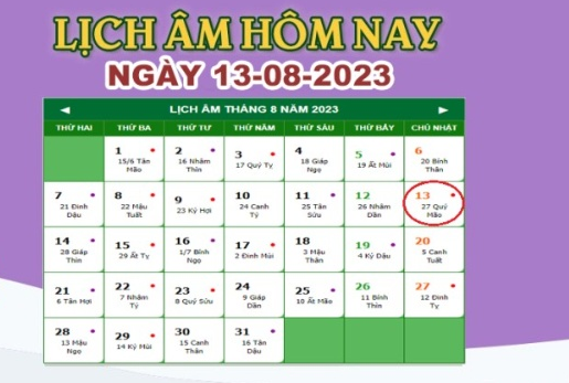 Thông tin chung về lịch âm hôm nay ngày 13/8/2023