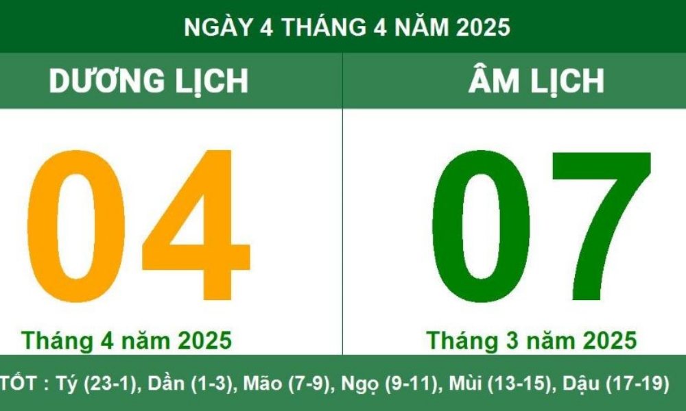 Lịch âm hôm nay 4/4/2025? Lịch vạn niên 4/4/2025. Ngày hôm nay ngày 3/4/2025 tốt hay xấu, việc nên và không nên làm?