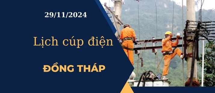 Cập nhật thông tin mới nhất về lịch cúp điện các khu vực tại Đồng Tháp ngày 29/11/2024 từ cổng thông tin Điện lực miền Nam.