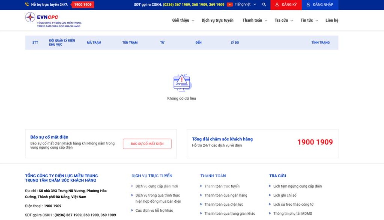 Trong quá trình sử dụng dịch vụ điện, khách hàng cần được hỗ trợ hoặc tư vấn, vui lòng liên hệ Trung tâm CSKH Tổng công ty Điện lực miền Trung – số điện thoại: 19001909 để được phục vụ 24/7.