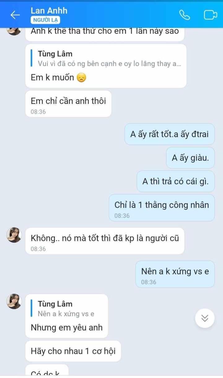 Đoạn tin nhắn "mập mờ" giữa 2 người: