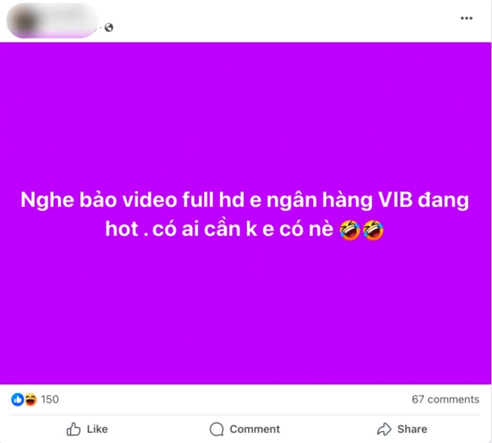 Vài ngày trở lại đây, thông tin một cô gái trẻ được cho là bị lộ clip nhạy cảm gây xôn xao mạng xã hội. Dù chưa biết thực hư ra sao, chưa xác định clip đó được lan truyền khi nào nhưng trên MXH hay trong một số hội nhóm liên tục đăng đàn với nội dung, "Qua nay rần rần vụ cô gái ngân hàng VIB. Ngủ dậy là thành người tối cổ luôn. Ai có link không?"