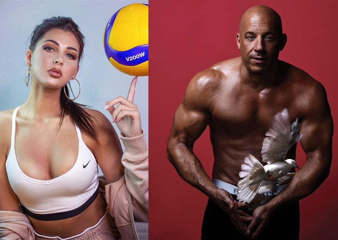 Vin Diesel, 52 tuổi, người Mỹ có chiều cao 1m82 là diễn viên chính của loạt phim "Quá nhanh quá nguy hiểm". Sở hữu cơ thể vạm vỡ, cùng một khuôn mặt nam tính, Diesel đã khá lớn tuổi nhưng vẫn được nhiều người yêu quí.
