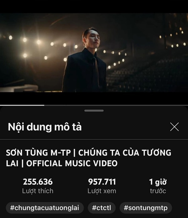 Đúng 0h đêm 8/3, Sơn Tùng chính thức ra mắt MV "Chúng Ta Của Tương Lai" sau thời gian dài chờ đợi từ người hâm mộ. Sau 1 giờ công chiếu, MV đã thu về con số khủng với gần 1 triệu lượt xem, hơn 255k lượt thích và con số này vẫn tiếp tục tăng nhanh sau đó.