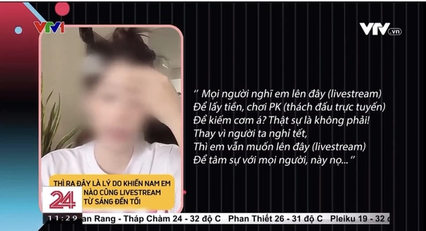 Về việc kiếm tiền trên mạng xã hội, chương trình đã lấy lại bằng chứng Nam Em từng chia sẻ: "Mọi người nghĩ em lên đây (livestream) để lấy tiền, chơi PK (thách đấu trực tiếp) để kiếm cơm á. Thật sự là không phải. Thay vì người ta nghỉ Tết, em vẫn muốn lên đây để tâm sự với mọi người này nọ".