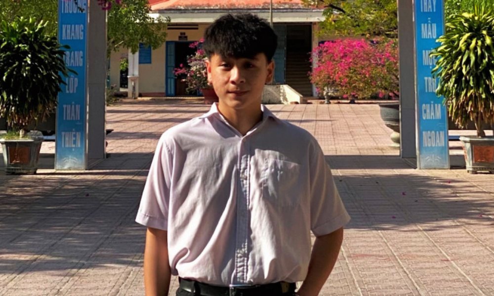 Nguyễn Gia Hưng tại trường THPT Ngô Gia Tự, TP Cam Ranh, Khánh Hòa. Ảnh: Yến Nguyễn