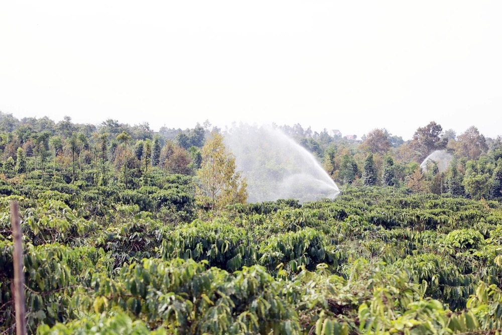 Nông dân Lâm Đồng tập trung tưới nước cây trồng trong cao điểm khô hạn