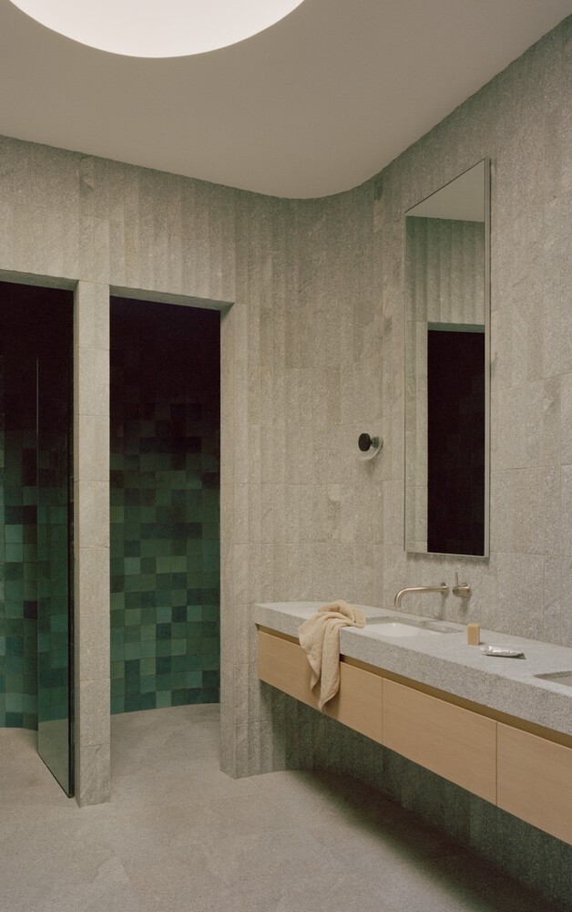 Việc bố trí khu vườn riêng bên trong lõi công trình tạo cơ hội cho tất cả các phòng ngủ và không gian còn lại được kết nối trực tiếp với thiên nhiên.