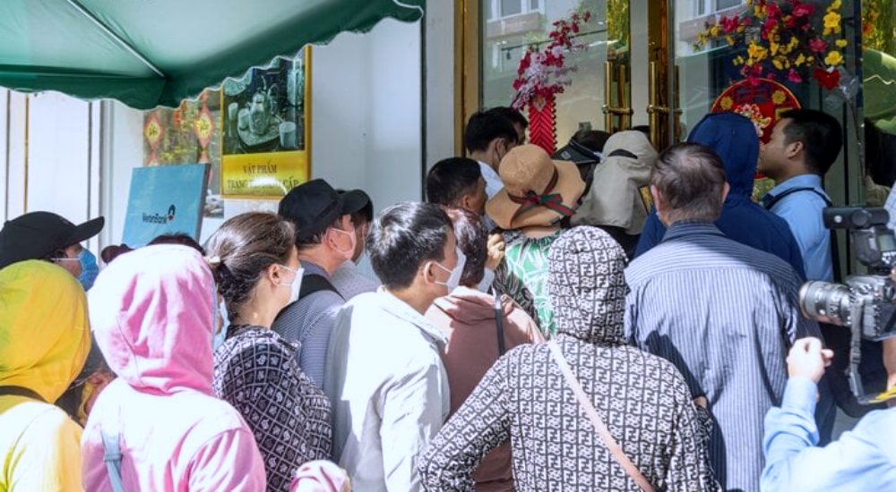 Càng sát giờ ngân hàng mở bán, người mua đến càng đông. Đến 14h30, cửa hàng mở cửa, quy định mỗi lần chỉ được 3 người vào mua. Vì thấy lượng người quá đông, nhiều khách có tâm lý lo sợ sẽ hết vàng do ngân hàng không giới hạn số lượng mua. Do đó đã diễn ra cảnh khách tranh nhau vào mua trước để mua được vàng, tạo cảnh khá lộn xộn và căng thẳng.