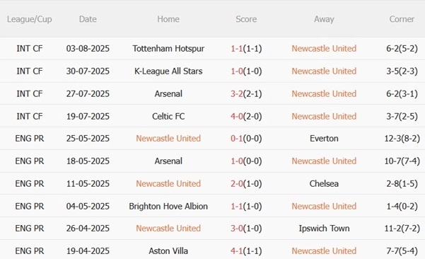 Phong độ và thành tích đối đầu Newcastle vs Atletico Madrid