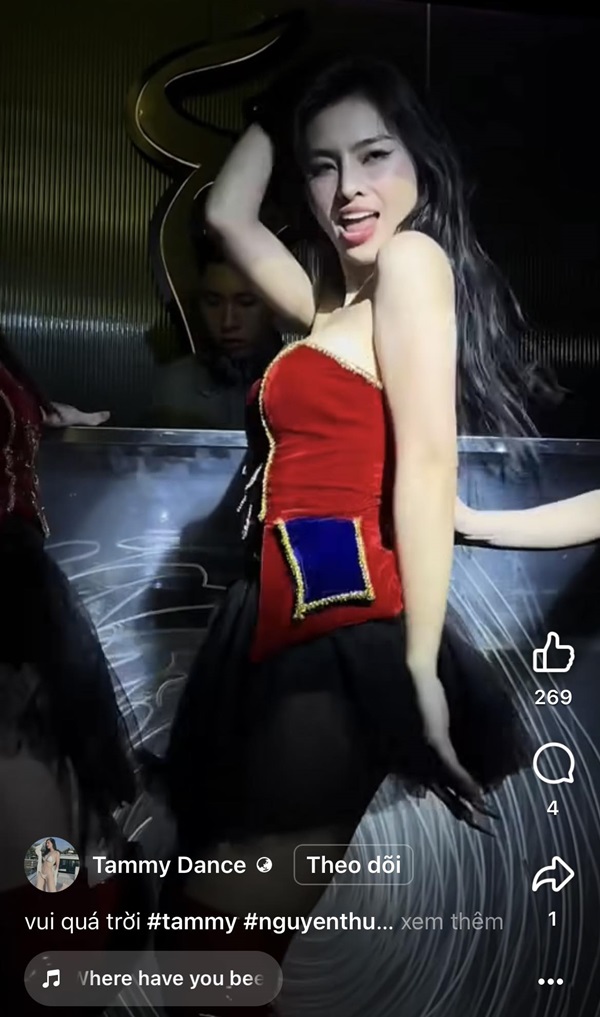 Hotgirl Tammy chính là nhân vật nhận được nhiều sự quan tâm nhất lúc này. Với nhan sắc xinh đẹp, làn da trắng sáng cùng thân hình nóng bỏng, cô nàng không ngại diện những trang phục ngắn, hở trên thiếu dưới và trình diễn những động tác nhảy vô cùng nhức mắt.