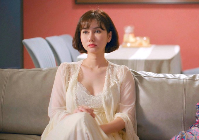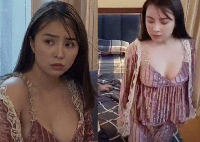 Tuy nhiên, nếu xem phim, khán giả không khó để nhận ra là ở các cảnh quay ngoài phòng ngủ, nữ diễn viên này đã khéo léo mặc áo choàng bên ngoài. Chỉ ở những phân cảnh ở trong phòng ngủ cùng ông xã Quyên mới buông áo choàng lả lơi, để lộ váy ngủ hai dây phía trong, tôn vòng một đầy đặn.