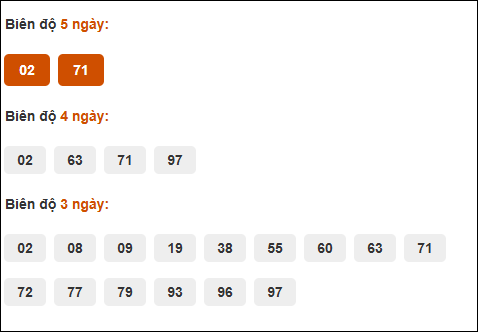 Đuôi 1: 3 ngày, Đuôi 3: 2 ngày, Đuôi 4: 2 ngày, Đuôi 7: 2 ngày, Đuôi 2: 1 ngày