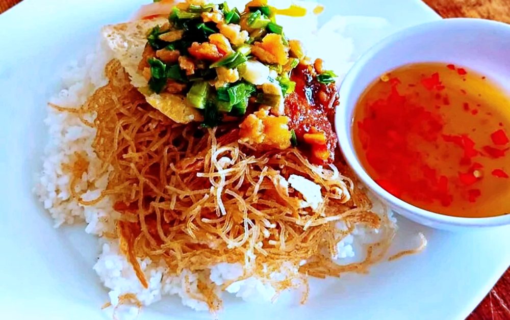 Dĩa cơm tấm sườn bì chả giá 30.000 đồng tại Bếp chay Phạm Hồng Phước. (Ảnh: Toplist)