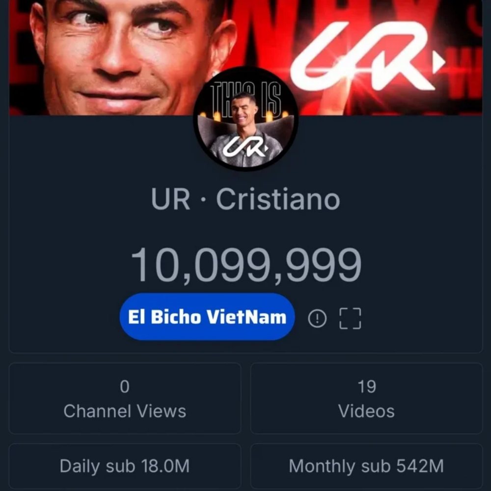 Cristiano Ronaldo - một trong những cầu thủ bóng đá nổi tiếng nhất thế giới, đã một lần nữa chứng minh sức ảnh hưởng to lớn của mình trên mạng xã hội. Vào ngày 21/8/2023 (giờ Việt Nam), Ronaldo chính thức ra mắt kênh YouTube cá nhân mang tên "UR Cristiano" và nhanh chóng tạo nên cơn sốt trên nền tảng chia sẻ video lớn nhất thế giới này.