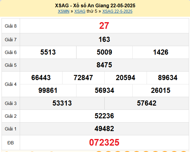 Xem kết quả XSAG tuần trước ngày 22/5 tại:
