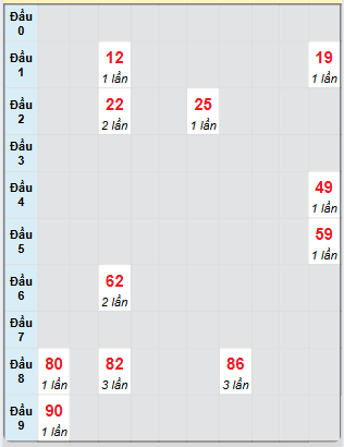 - Đầu lô tô xuất hiện nhiều nhất trong kỳ quay trước: 1