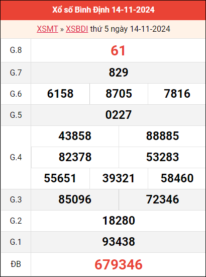 Bảng kết quả Bình Định ngày 14/11/2024 tuần trước