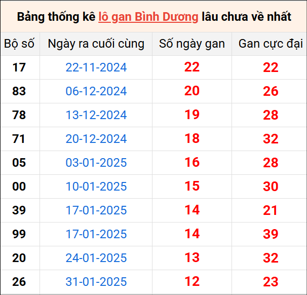 Bảng thống kê lô gan Bình Dương lâu về nhất 2/5/2025