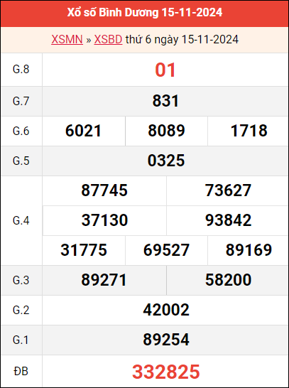 Bảng kết quả Bình Dương ngày 15/11/2024 tuần trước