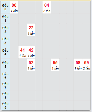 - Các cặp số về nhiều nhất gần đây: 08 - 58 - 42 - 43 - 71