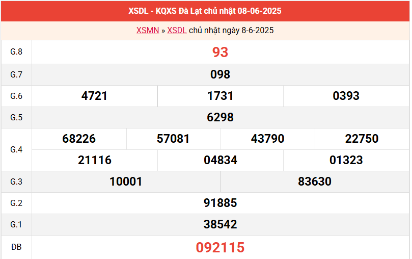 Kết quả xổ số Đà Lạt ngày 8/6/2025