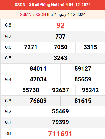 Bảng kết quả Đồng Nai ngày 4/12/2024 tuần trước
