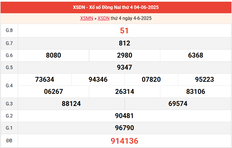 Kết quả xổ số Đồng Nai ngày 4/6/2025