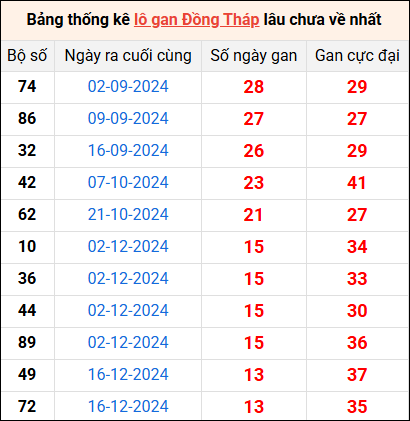 Bảng thống kê lô gan Đồng Tháp lâu về nhất 24/3/2025