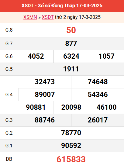 Bảng kết quả Đồng Tháp ngày 17/3/2025 tuần trước