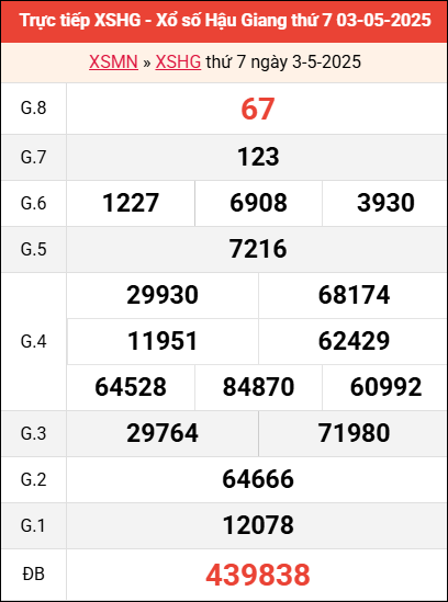 Bảng kết quả Hậu Giang ngày 3/5/2025 tuần trước