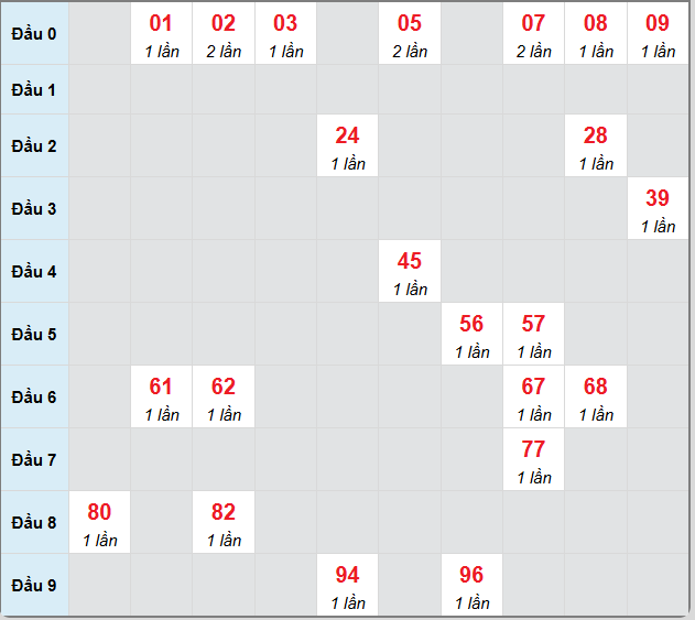 - Đầu lô tô xuất hiện nhiều nhất trong kỳ quay trước: 8