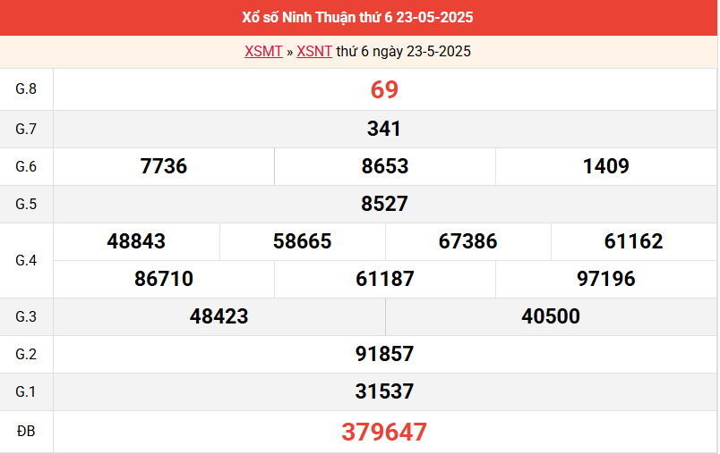 Kết quả xổ số Ninh Thuận ngày 23/5/2025