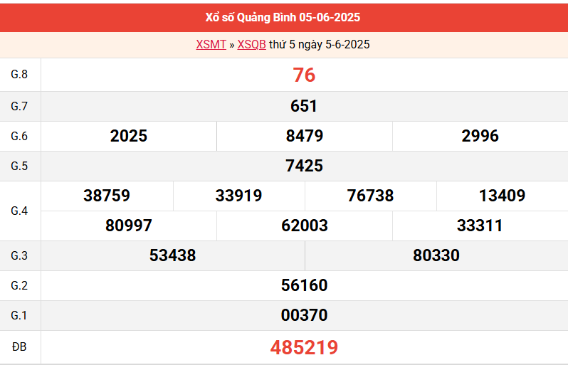 Xem kết quả XSQB tuần trước ngày 5/6 tại: