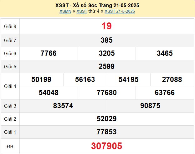 Kết quả xổ số Sóc Trăng ngày 21/5/2025