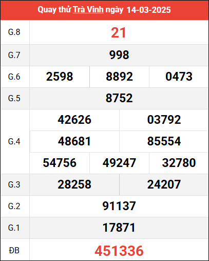 ✅ 3. Soi cầu Trà Vinh ngày 14 tháng 3 thứ sáu