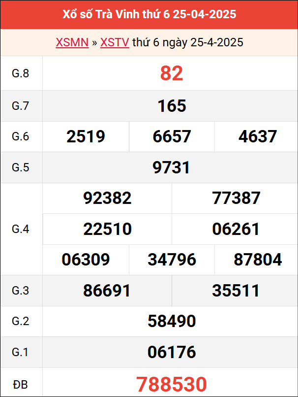 Bảng kết quả Trà Vinh ngày 25/4/2025 tuần trước