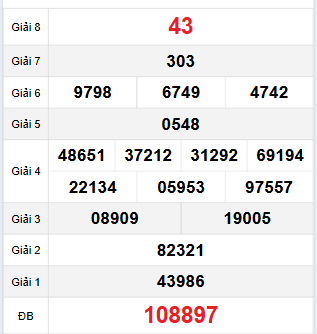 - Các cặp số về nhiều nhất gần đây: 03 - 43 - 01 - 66 - 98