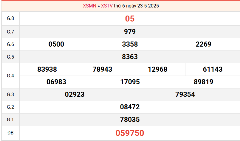 Kết quả xổ số Trà Vinh ngày 23/5/2025
