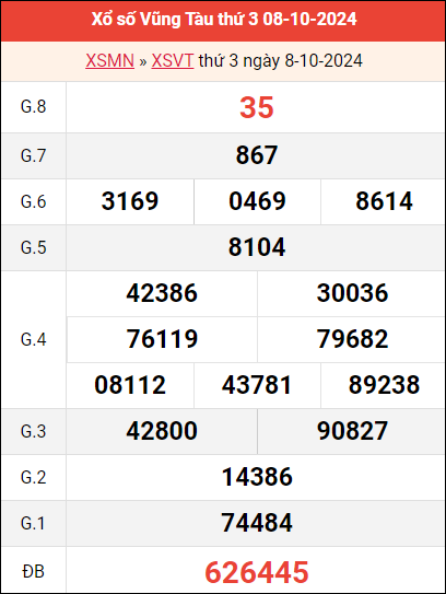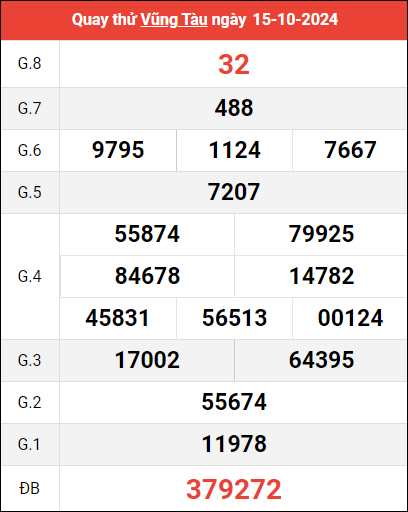 Bảng kết quả Vũng Tàu ngày 8/10/2024 tuần trước