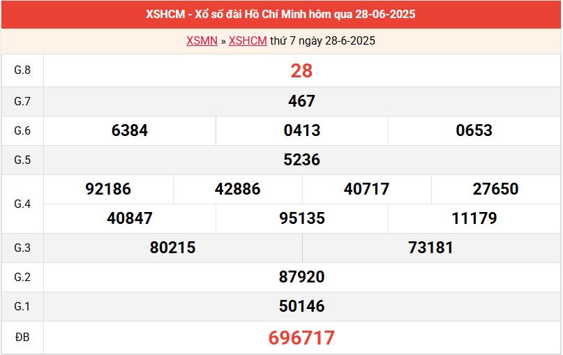 Bảng kết quả TP HCM ngày 28/6/2025 tuần trước