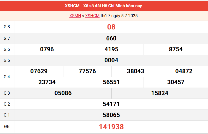 Bảng kết quả TP HCM ngày 5/7/2025 tuần trước