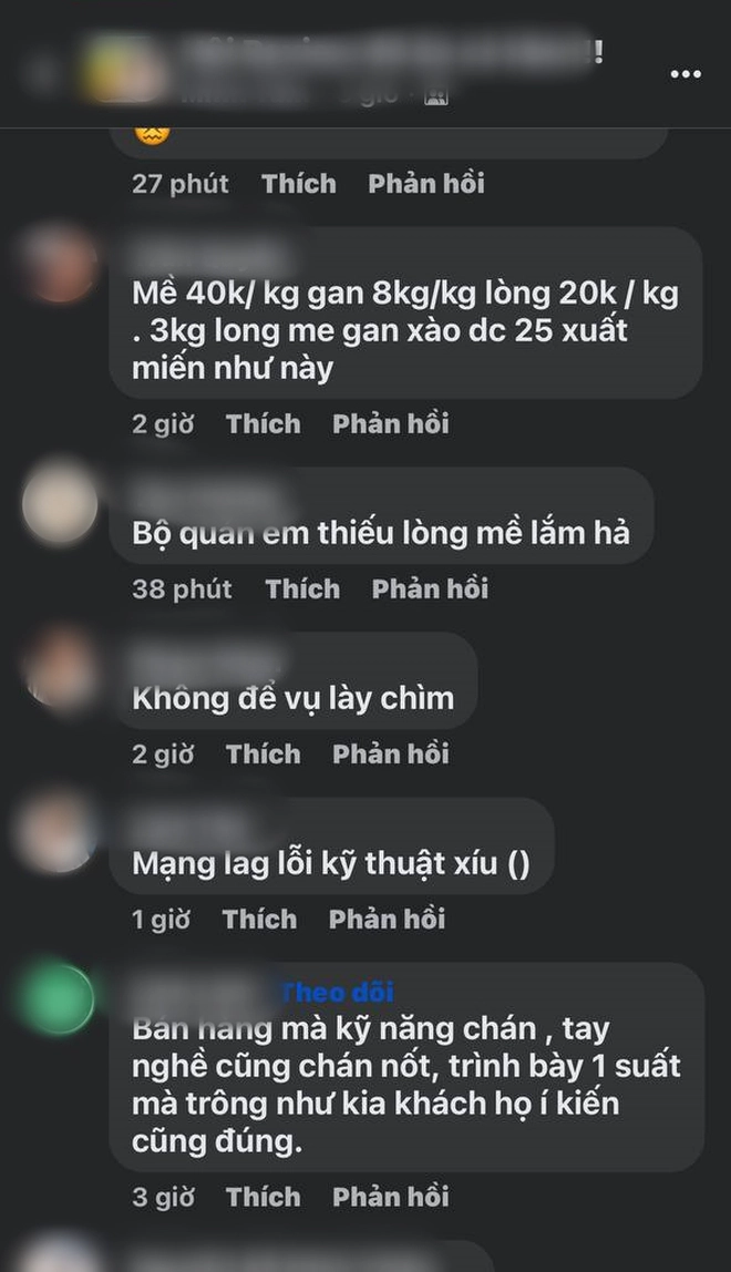 Ngay sau khi bài đăng xuất hiện trên mạng xã hội, cộng đồng mạng không giấu được sự phẫn nộ trước cách bán hàng mà quán ăn này áp dụng. Đáng chú ý, rất nhiều người không ngần ngại chia sẻ những thông tin chi tiết về mức giá cả thị trường và so sánh rõ ràng, cụ thể là giá bán của một bộ lòng mề hiện đang là bao nhiêu. Một số người còn chỉ trích gay gắt, cho rằng việc quán bán suất miến xào lòng mề 49 nghìn đồng mà lại chẳng thấy lòng mề đâu.