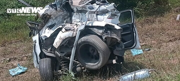 Ô tô con BKS Thanh Hoá bẹp dúm, biến dạng hoàn toàn sau tai nạn. (Ảnh: CTV)