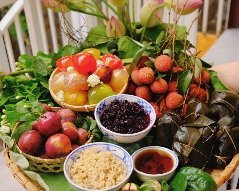 Tết Đoan Ngọ hay còn gọi là Tết diệt sâu bọ, người dân thường chuẩn bị lễ cúng với đa dạng sản vật như: Hoa quả, rượu nếp, xôi vò...
