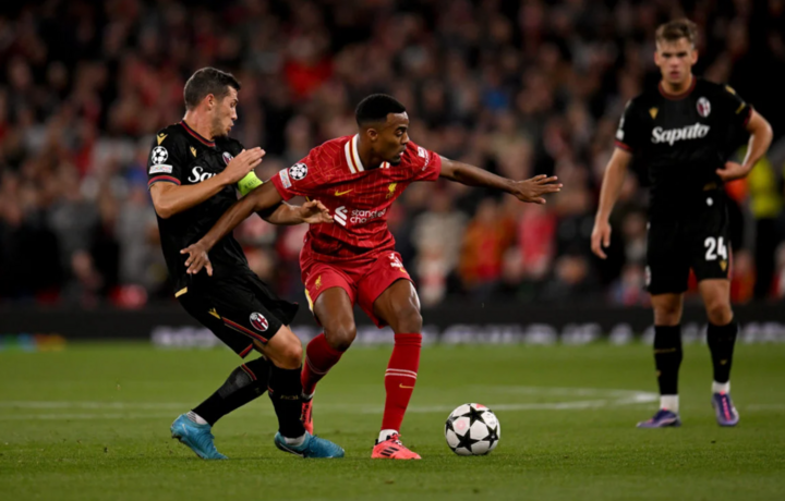 Đêm qua, anh rê bóng qua người thành công 3 lần và tung 2 đường chuyền tạo cơ hội ghi bàn rõ rệt. Khả năng thoát pressing của Gravenberch rất ấn tượng. Anh xử lý gọn gàng dù chịu áp lực từ hàng tiền vệ 5 người của Bologna.