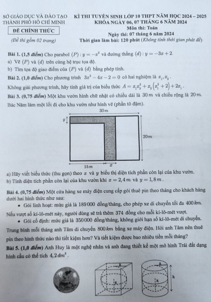 Đề thi toán lớp TPHCM 2024